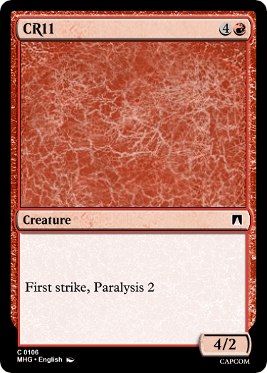I am in fact still here making cards, just at a slower rate than usual. Burnout for the project has been creeping in slowly, but I still feel passionate enough about it to push it to a point where the commons are at least in SOME kind of finished state before I become too busy to focus on the project.