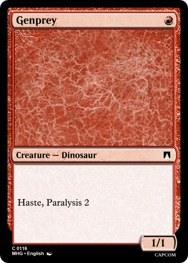 Red card design proved to be pretty difficult to implement, and I suspect green will fare similarly. It was a weak point I figured I would have, as Red and Green are two of my least played/experimented with colors. I still have a pretty good grasp of their design philosophy and all that, but it was more difficult to make cards that I personally would want to play – especially at common.